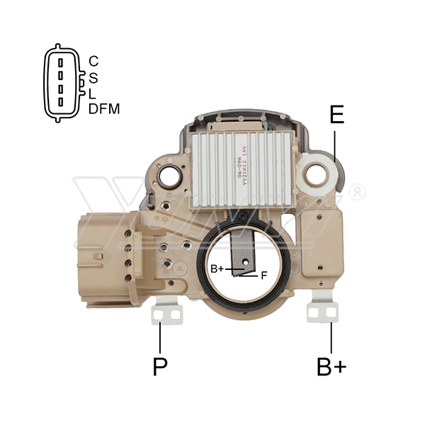 | A-Circuit Voltage Set Point 14.60V Soft Start 30% Field, Lamp Shorted Circuit Protection Sense Loss Indication Under Voltage Indication Over Voltage Indication DFM function |